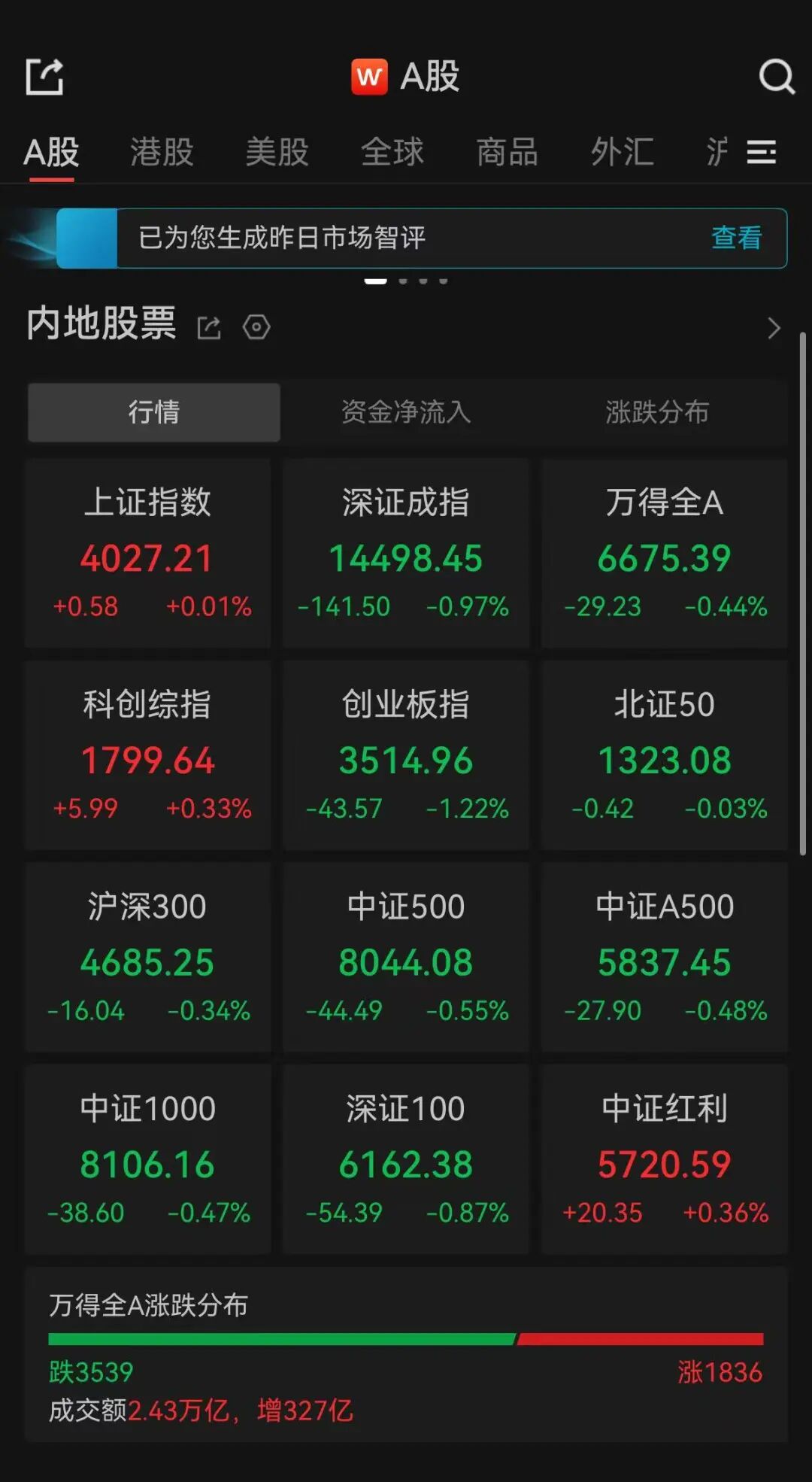 全市成交额2.43万亿,超3500只个股下跌。