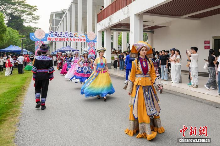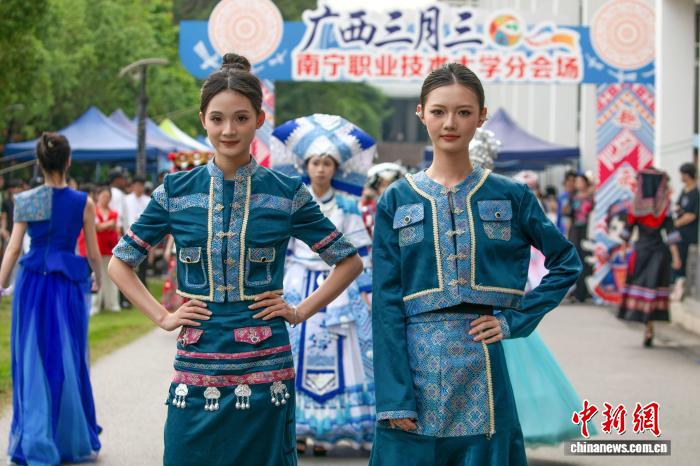 图为南宁职业技术大学学生在表演民族服装秀。南宁职业技术大学 供图