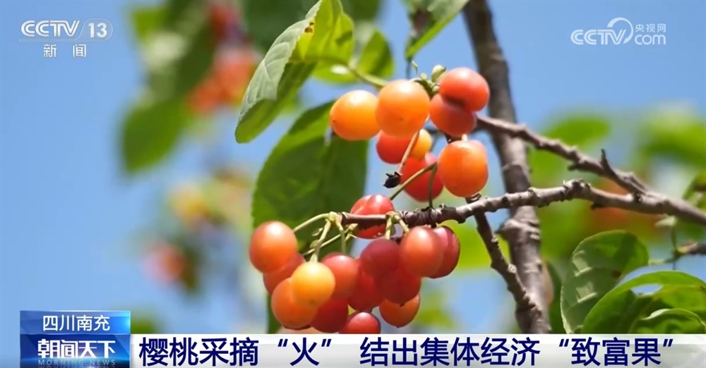 四川南充市江陵镇三房沟村的500余亩樱桃陆续成熟,走进樱桃采摘园,圆润饱满、红艳欲滴的樱桃挂满枝头。成群的游客在林中轻盈穿梭,边摘边尝,尽情品尝“春日的甜美”。