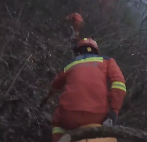 男子上山采药时失足坠崖 消防员4小时紧急营救