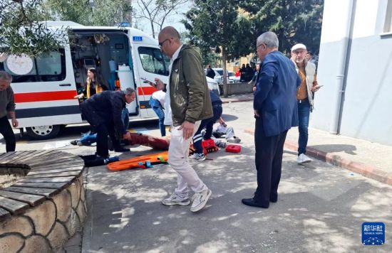 4月15日,在土耳其卡赫拉曼马拉什省一所中学的枪击事件现场,急救人员在抢救受伤人员。新华社发(穆斯塔法·卡亚摄)