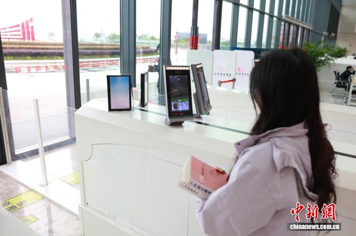 图为在江西省图书馆无感借还通道借书的读者。江西省图书馆供图